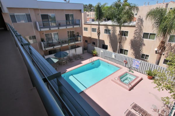 The complex offers a large swimmer’s pool, great patio chairs for lounging and BBQs, and a nice, hot Jacuzzi for those chilly L.A. spring eves. Two secure side-by-side parking spaces along with several guest spaces allow for easy access to and fro.