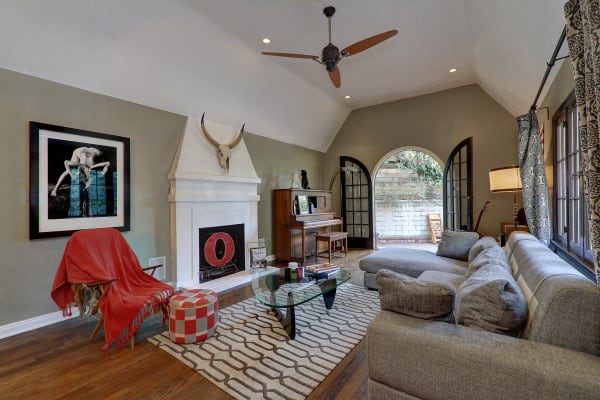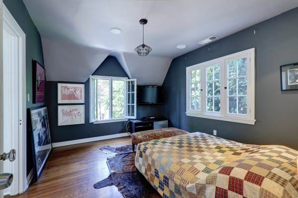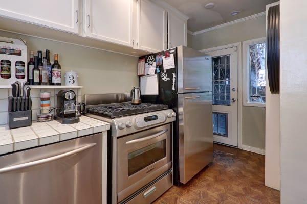 This Los Feliz retreat rests on a knoll above sought-after Canyon Drive. At one end are trendy boutiques and restaurants, and at the other, a peaceful park for hiking, kids, and pups. Inside the Roaring 20’s home are gleaming hardwood floors, soaring ceilings, a charming dining room with period built-in bookcases, a living room with fireplace, a kitchen full of stainless-steel appliances, and a unique screening room. A walled and gated outdoor living area is perfect for entertaining!