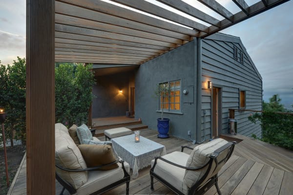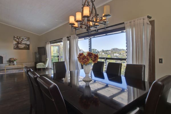 This home is a true Hollywood Hills pad, just north of landmark Mulholland Drive. Near the end of a cul-de-sac, this Las Alturas home provides a safe and secure street to hang out, walk the pups, and take in the “mountain” air. And, it’s only a short walk to the upper entrance to Runyon Canyon Park.