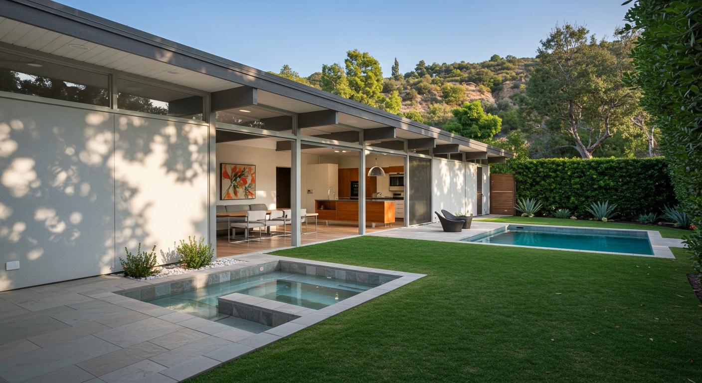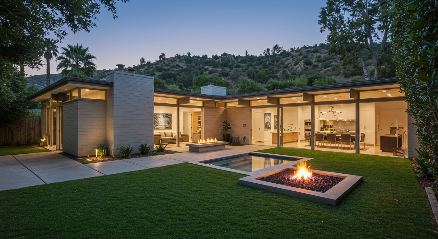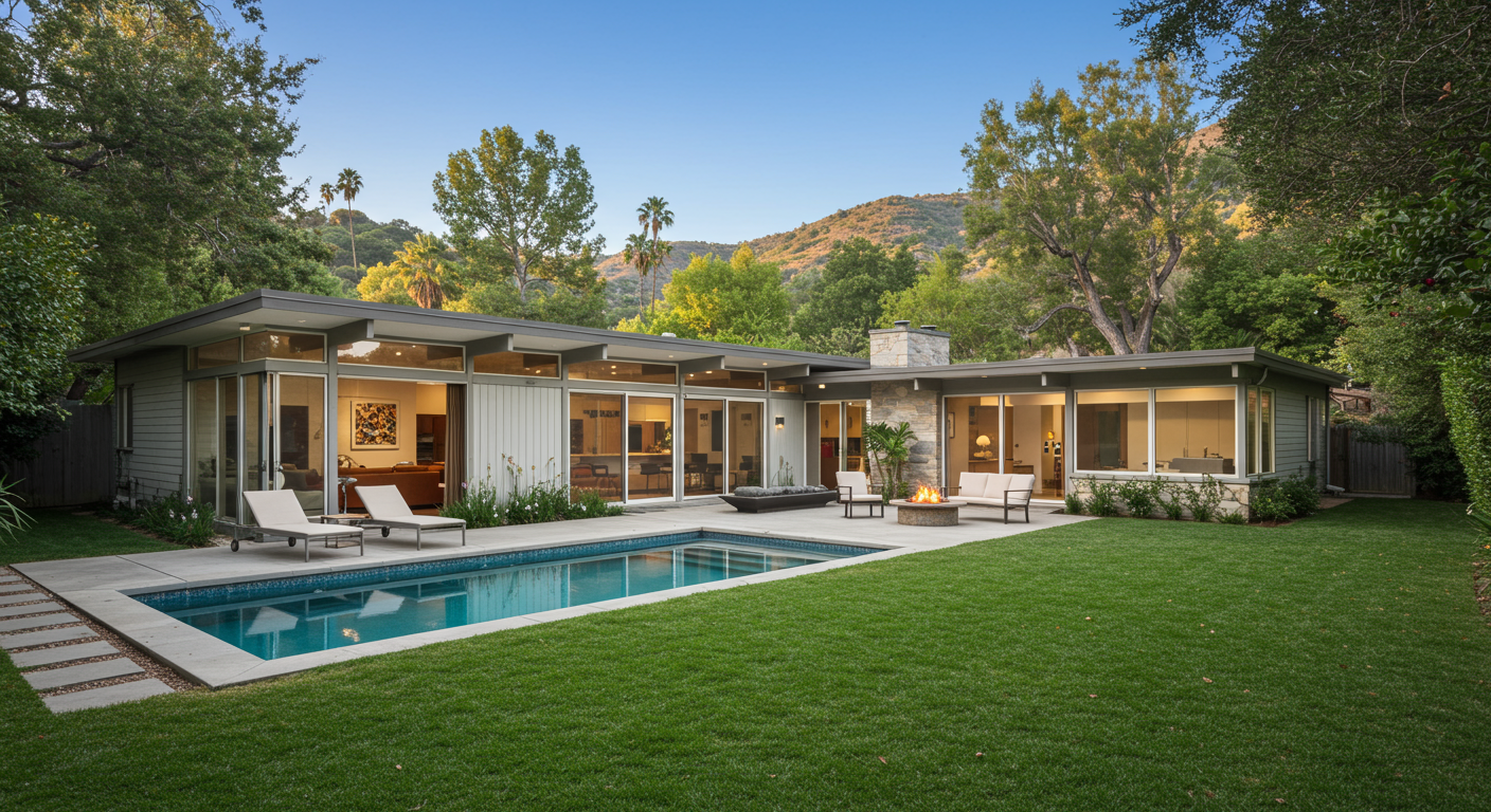 Mid-Century modern home remastered and renovated with fabulous style and quality. This lovely Laurel Canyon home for sale captures the outstanding design and exquisite taste that exemplifies this impeccable 2014/2015 rebuild. Secure private courtyard grants electronic access to a world of lavish finishes & smart design in this open and bright modern home. A large glass entry corridor leads expansive entertaining wing featuring a living room w/high vaulted ceilings & fireplace, a large modern kitchen, and a sunken media den. Walls of glass open to canyon views, patios, and a grassy yard featuring a private pool & spa, and an outdoor firepit. The opposite bedroom wing reveals a master suite with a large walk-in closet, stunning spa bath, and privileged access to the pool and spa. The second bedroom suite also opens to the yard and connects to a second gorgeous bath. The third bedroom enjoys courtyard views & accesses a third modern bath. All the best new hand-selected materials, systems, and electronics are employed throughout this stunning modern Laurel Canyon home.