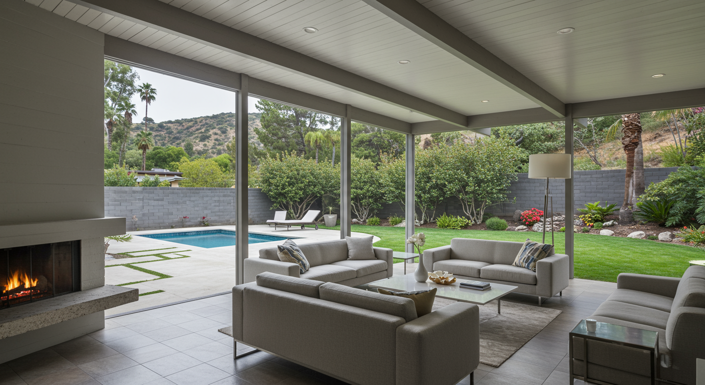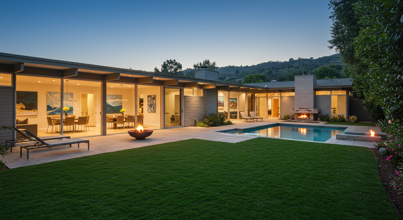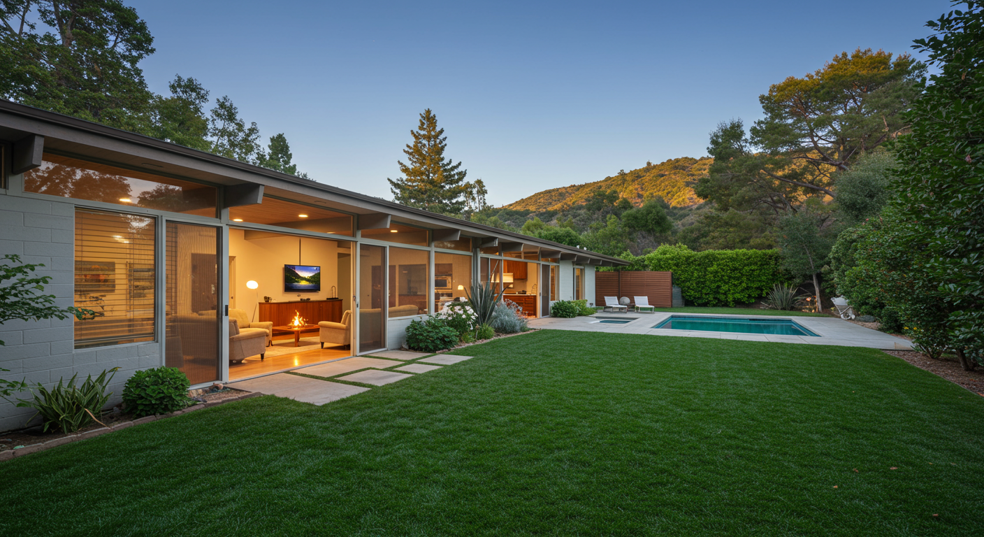 Mid-Century modern home remastered and renovated with fabulous style and quality. This lovely Laurel Canyon home for sale captures the outstanding design and exquisite taste that exemplifies this impeccable 2014/2015 rebuild. Secure private courtyard grants electronic access to a world of lavish finishes & smart design in this open and bright modern home. A large glass entry corridor leads expansive entertaining wing featuring a living room w/high vaulted ceilings & fireplace, a large modern kitchen, and a sunken media den. Walls of glass open to canyon views, patios, and a grassy yard featuring a private pool & spa, and an outdoor firepit. The opposite bedroom wing reveals a master suite with a large walk-in closet, stunning spa bath, and privileged access to the pool and spa. The second bedroom suite also opens to the yard and connects to a second gorgeous bath. The third bedroom enjoys courtyard views & accesses a third modern bath. All the best new hand-selected materials, systems, and electronics are employed throughout this stunning modern Laurel Canyon home.