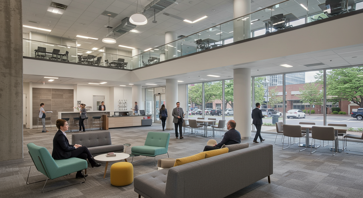 - Updated building with chic lobby, attached gathering & eating spaces